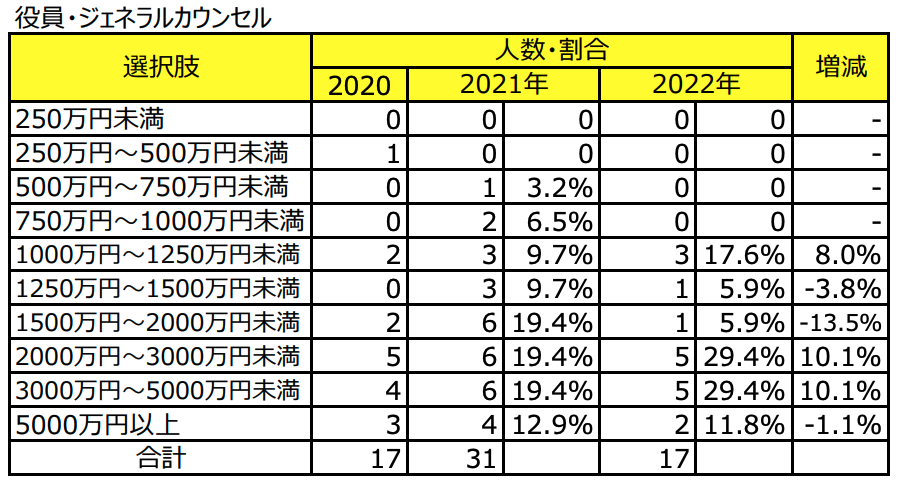 ※2023年以降のアンケート結果から『役員・ジェネラルカウンセル』における年収表記はなし