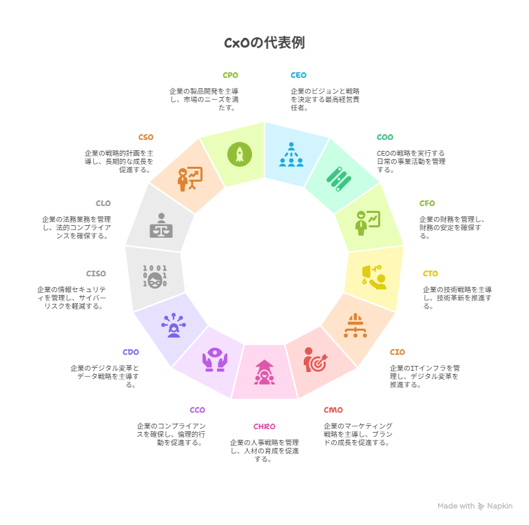 CxOの代表例として、以下のものが挙げられます。