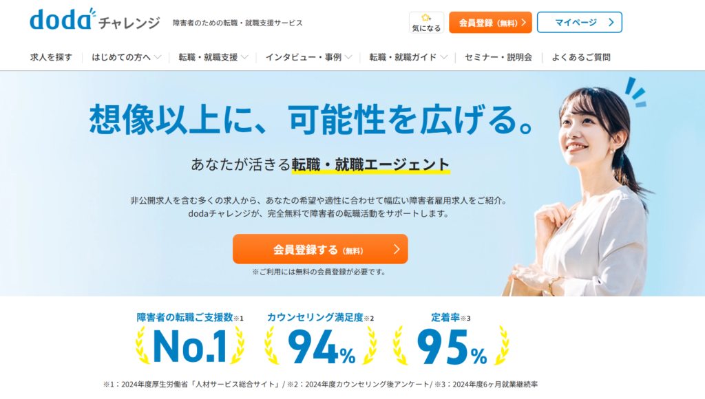 dodaは、幅広い年代・職種を対象とした国内最大級の総合転職サービスです。豊富な求人の中から、自分に合った仕事を探したい方に向いています。