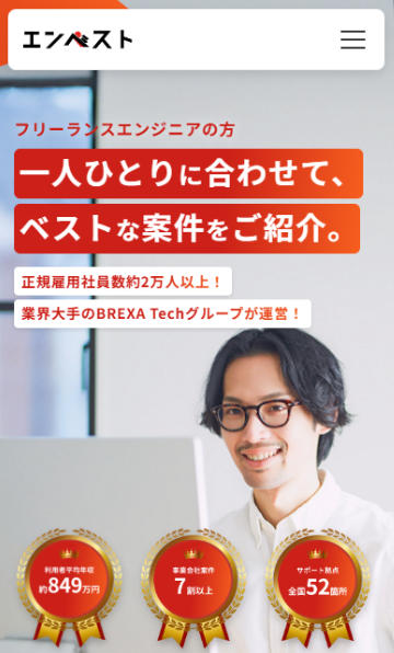 個人で案件を探せる範囲には限りがありますが、エンベストに登録すれば、一般には出回らない大手企業の案件や、スキルを正当に評価してくれる高単価案件に出会える可能性が広がります。