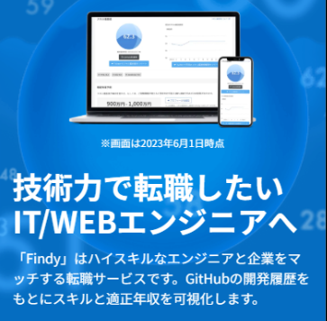Findyは、技術力を可視化し、キャリアの可能性を広げたいエンジニアにおすすめのサービスです。