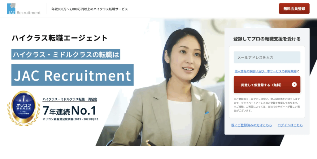 JACリクルートメントは、年収600万円以上のミドル・ハイクラス層が海外営業・外資系・管理職への転職を目指す際におすすめの転職エージェントです。