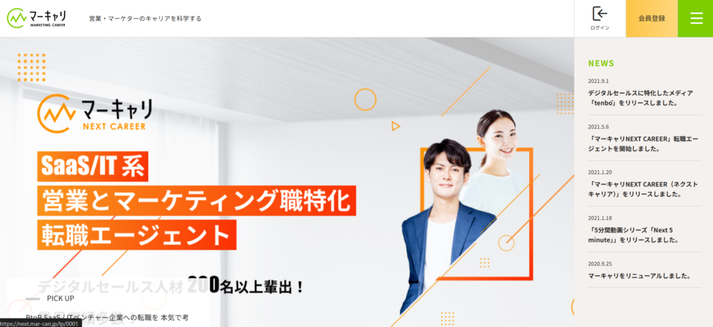 マーキャリNEXT CAREERは、SaaS企業の営業職へのキャリアチェンジを目指す人におすすめの転職エージェントです。