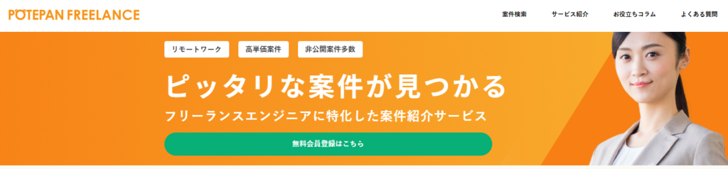 | フリーランスエンジニア向けの案件紹介サービス。高単価案件とキャリアサポートを提供。 | 詳細 | |