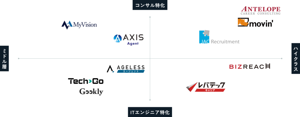 ここでは、エンジニアのキャリアチェンジ実績が豊富で、ITコンサル転職にも精通している転職エージェント10社を厳選して紹介します。
