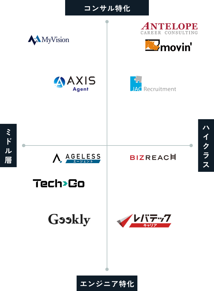 AXIS Agentはコンサルティング業界に特化して20年以上の歴史を持つ、業界の草分け的な転職エージェントです。長年の実績から各ファームとの信頼関係が厚く、他では見られないような非公開求人や独占求人を多数保有しています。
