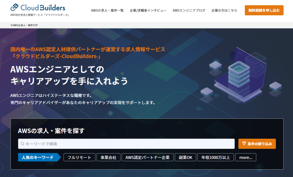 Cloud Builders | クラウド特化型 | AWSなどクラウド領域の専門性を活かしたい人 | 214件 | 非公開 | 詳細を見る | |