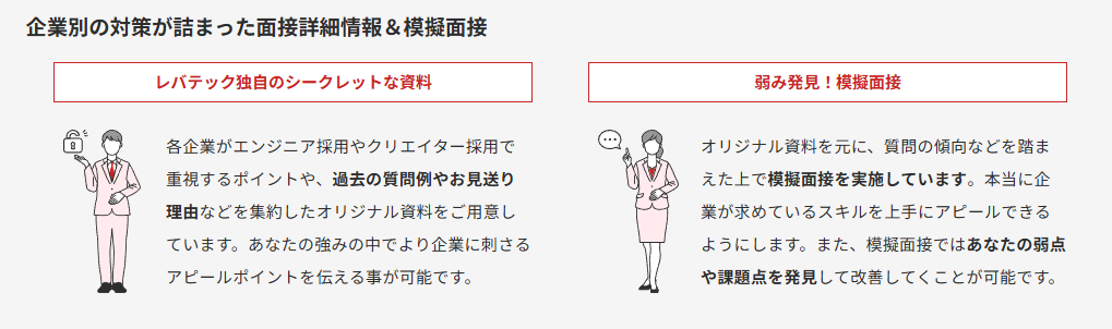 面接の前には、応募する企業ごとに合わせた模擬面接など、より具体的な対策サポートを受けられます。