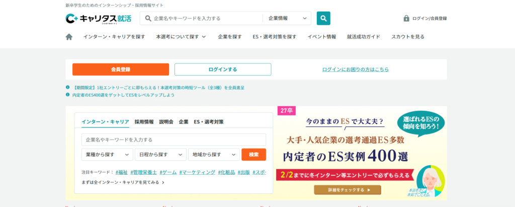 ES添削、模擬面接、業界研究セミナー、グループディスカッション対策など、多くのサービスが無料で用意されています。