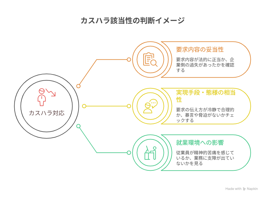 カスハラか正当なクレームかの判断は、実務上最も難しい問題の一つです。
