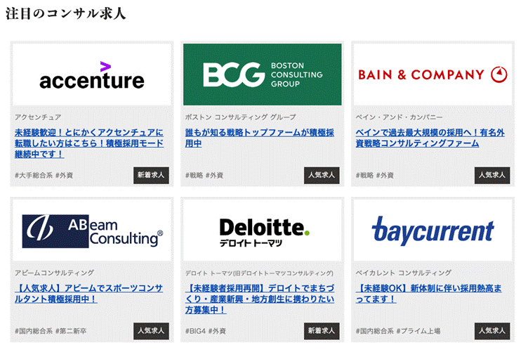 第一に、キャリアコンサルタントの多くがコンサルティング会社出身であるということ。とにかくこの業界は独特な世界。他の業種では使わない言葉や慣行が多いのです。それを理解しているキャリアコンサルタントがいることは、このサイトの大きな強みだと言えます。