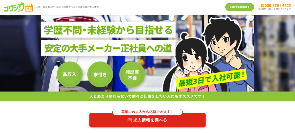 | 製造・現場系 | 組立・加工・検査・マシンオペレーター | ◎(未経験OKの求人が豊富) |