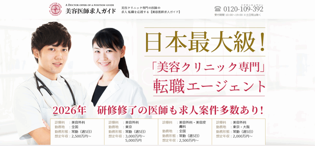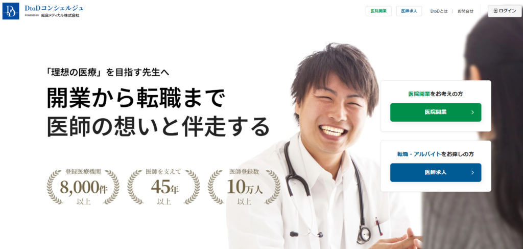32万人以上の医師が登録する国内最大級のプラットフォーム医療情報サイト「m3.com」のネットワークを活かした独占・非公開求人が豊富年収2,000万円以上のハイクラス求人に強く、交渉力に定評がある