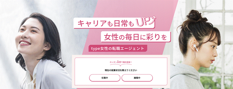 | type女性の転職エージェント | 転職エージェント | 女性向け | 女性のキャリア支援に特化 |